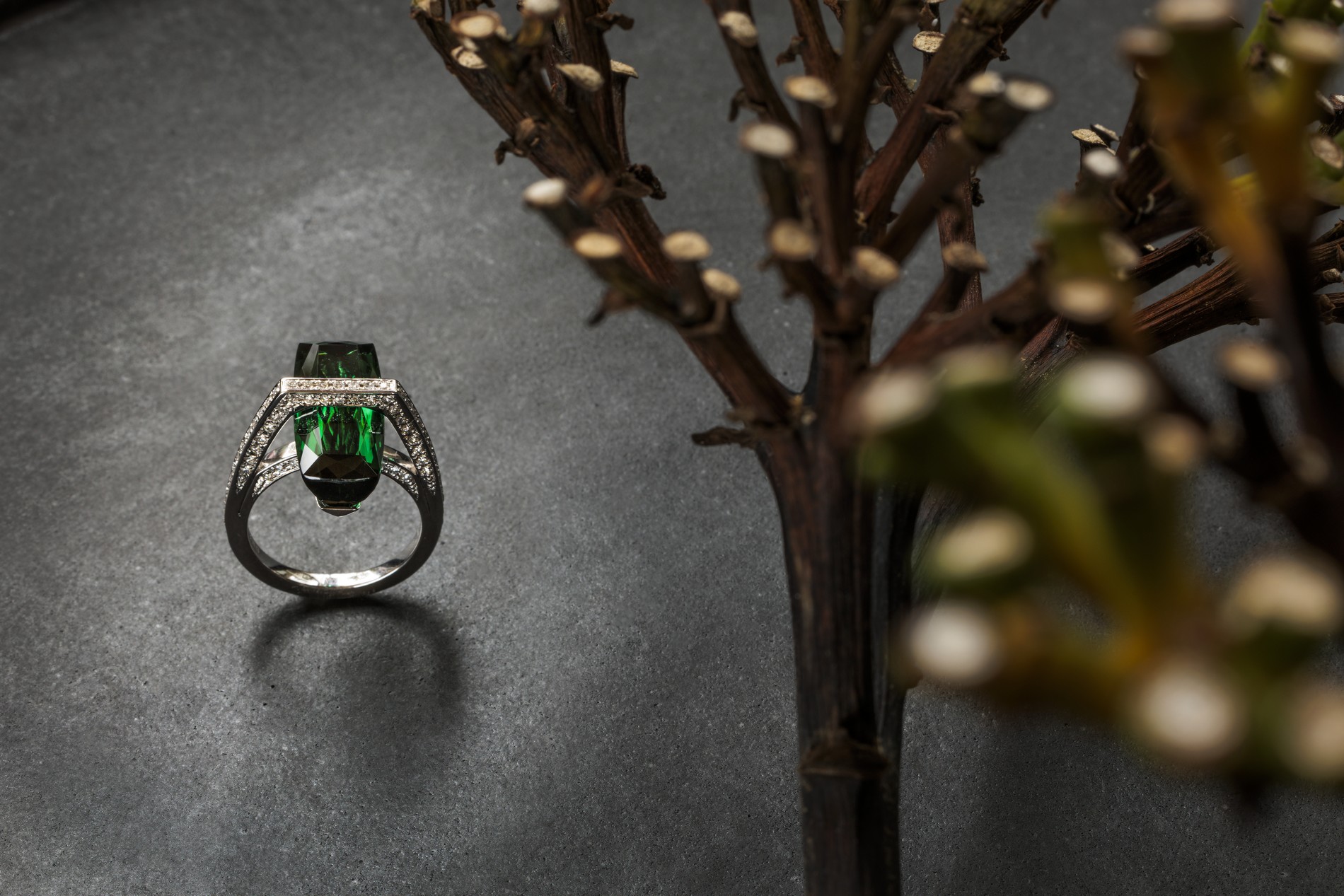 凛とした上質なグリーントルマリンを際立たせる